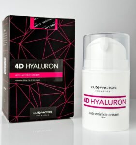 Certifikovaná přírodní kosmetika Lux-Factor je hrdá na svůj mimořádně účinný krém proti vráskám Lux-Factor 4D Hyaluron se 100% přírodnou kyselinou hyaluronovou, která proniká do povrchových a hlubších vrtev pokožky a hydratuje ji zevnitř směrem ven.