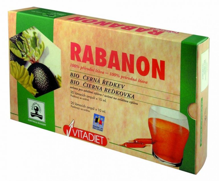 Podpořit detoxikaci organismu či ulevit při zažívacích potížích i trápeních s močovými cestami slibují ampulky Rabanon se šťávou z černé ředkve. Ta má vysoký obsah vitamínů C i B a minerálních látek, například jde o železo, síru, měď, vápník, hořčík nebo fosfor. Další důležitou složkou je silice raphanol s aktivní sirnou složkou. Díky ní ředkev pozitivně působí na játra, podporuje tvorbu žluče, má silný močopudný a dezinfekční účinek. Šťáva neobsahuje konzervační či jiné chemické přidané látky.
