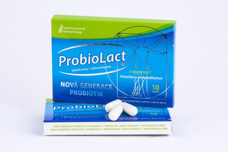 Doplněk stravy ProbioLact jako jediný na světě využívá unikátní český patent tzv. biofilmová probiotika, kde se probiotická kultura v přípravku blíží svojí strukturou a vlastnostmi přirozené formě přátelských bakterií na naší střevní sliznici. Obsahuje vyvážený komplex 5 různých kmenů živých mikroorganismů v počtu až 10 miliard v denní dávce, je vhodný při užívání antibiotik a cestování. Doporučené dávkování je 1 tobolka jednou až dvakrát denně před jídlem. Přípravek není určen jako náhrada pestré stravy, není vhodný pro děti do 3 let, těhotné a kojící ženy.